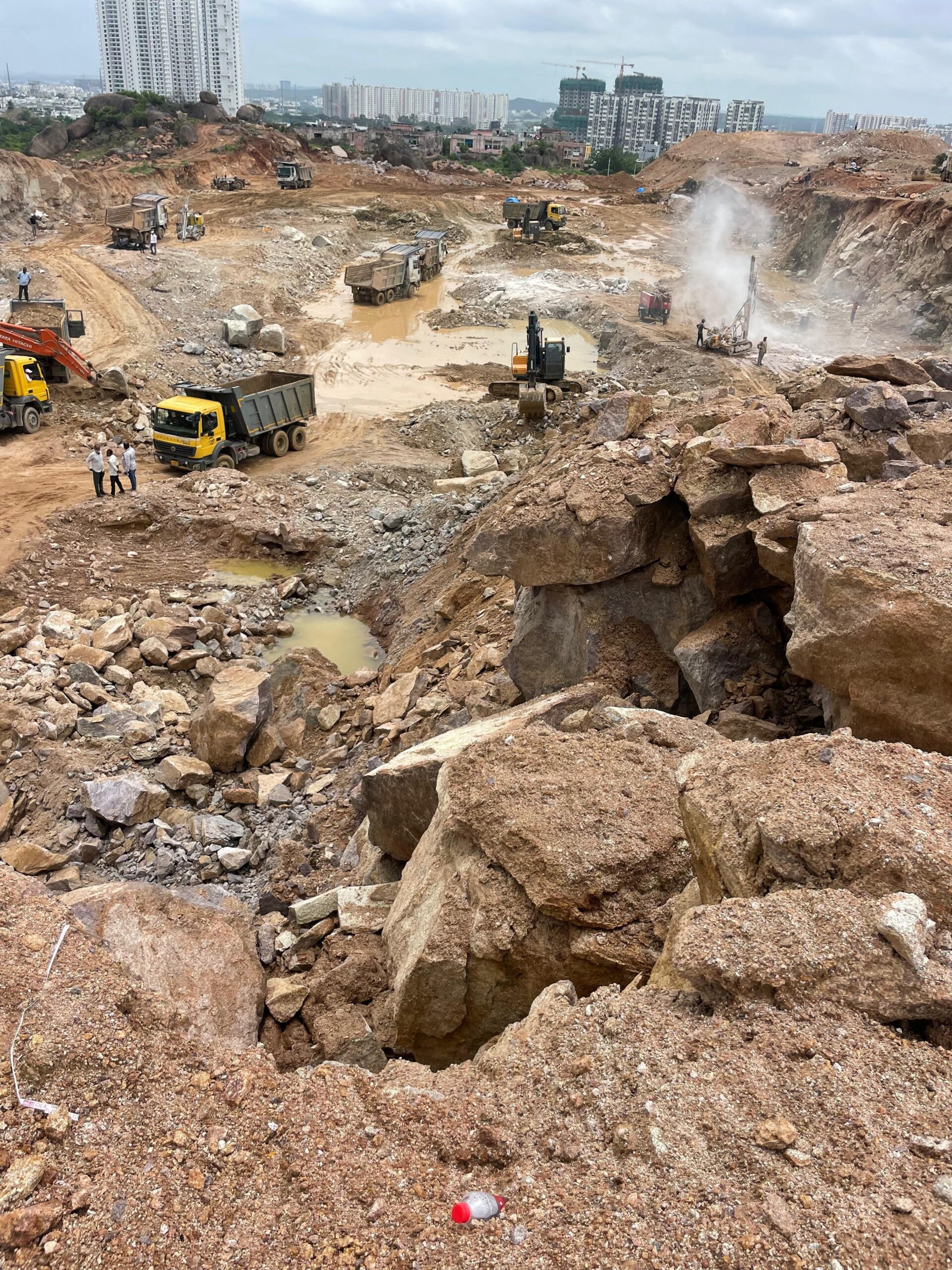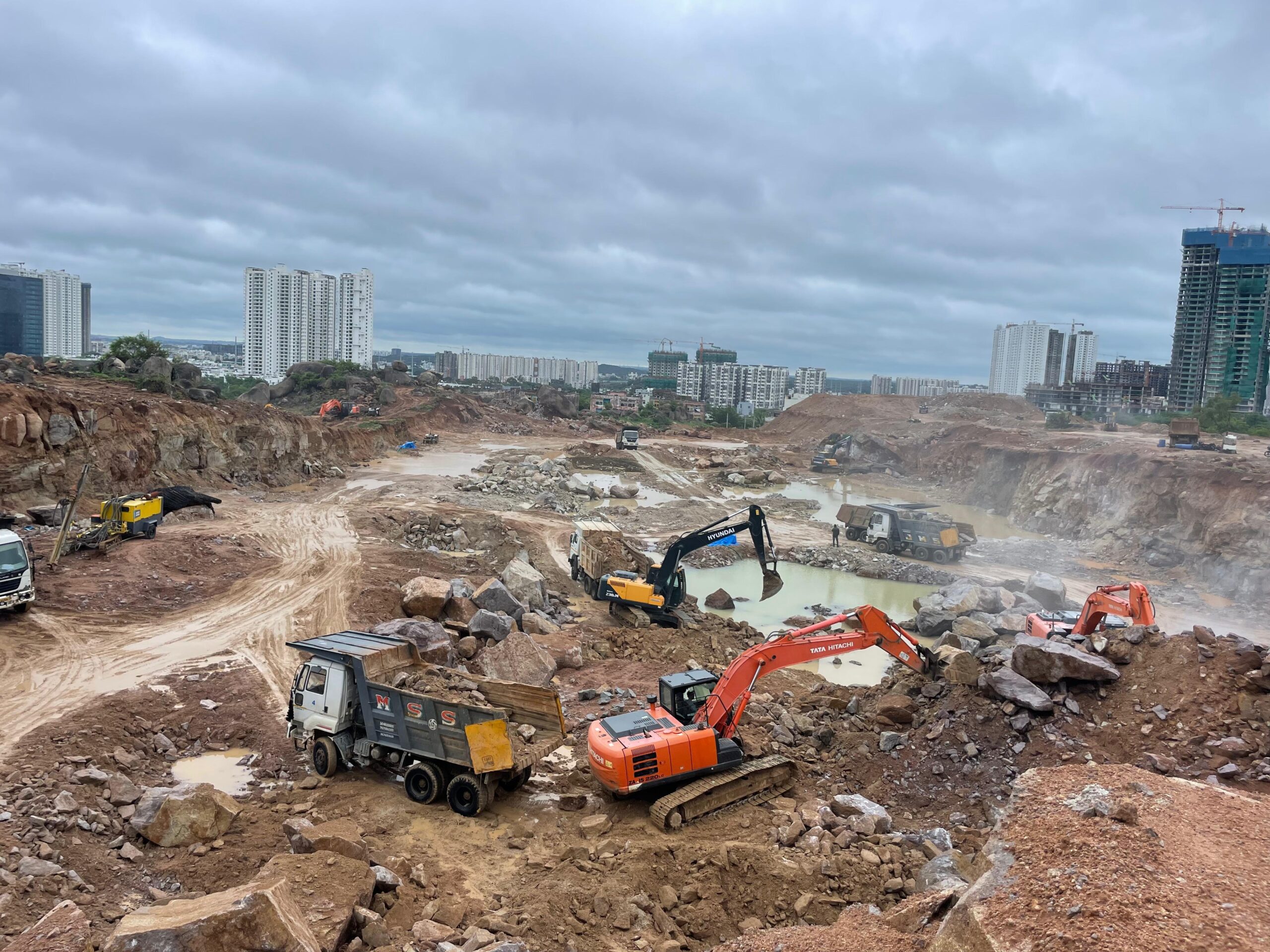 The Loft project is one of Vision Developers' landmark excavation assignments in Hyderabad — a large scale residential development requiring extensive hard rock cutting, bulk rock removal, and deep foundation preparation across a site heavily dominated by solid granite formations. Hyderabad's rocky terrain presents unique challenges that demand specialized equipment, experienced operators, and meticulous planning — all of which Vision Developers delivered in full on the Loft project.